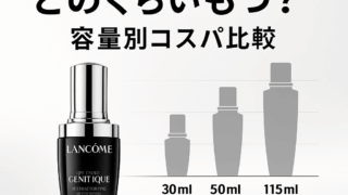 ランコムの人気美容液「ジェニフィック アルティメ セラム」はどのくらいもつ?30ml・50ml・115mlの容量別に持ち期間とコスパを比較!レフィルで賢く続けるコツも紹介。