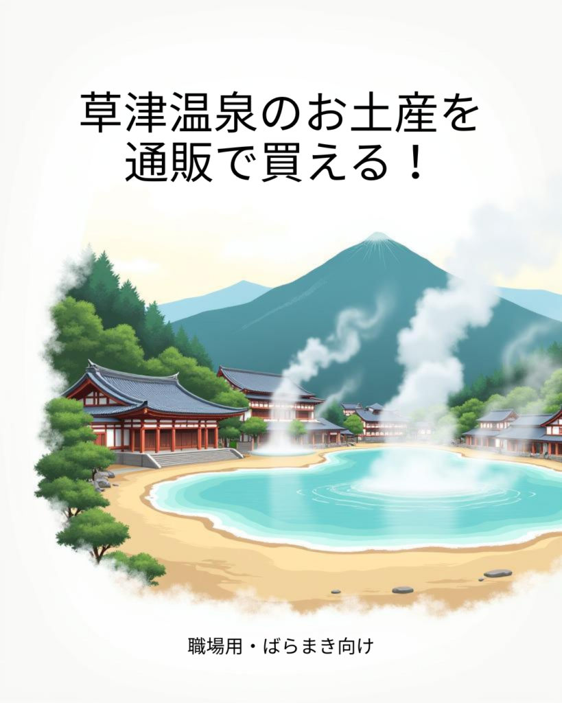 【草津温泉のお土産特集】通販で買える!職場用ばらまきに人気の食品6選 草津温泉に行ったあと、 「職場用のお土産を買い忘れた…」 「荷物になるから通販で済ませたい」 そんなとき、意外と困りますよね。 実は、草津温泉のお土産は職場ばらまき用でも通販... -