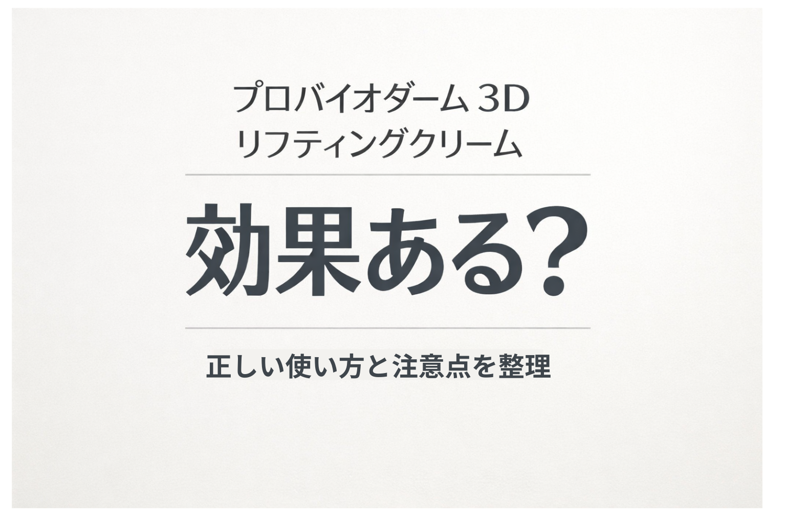 そこでこの記事では、プロバイオダーム 3D リフティングクリームについて、実際の体験談ではなく、公式情報や口コミ傾向をもとに「効果があると言われる理由」と「効果を感じにくくなるポイント」を整理します。